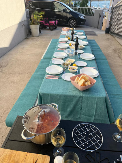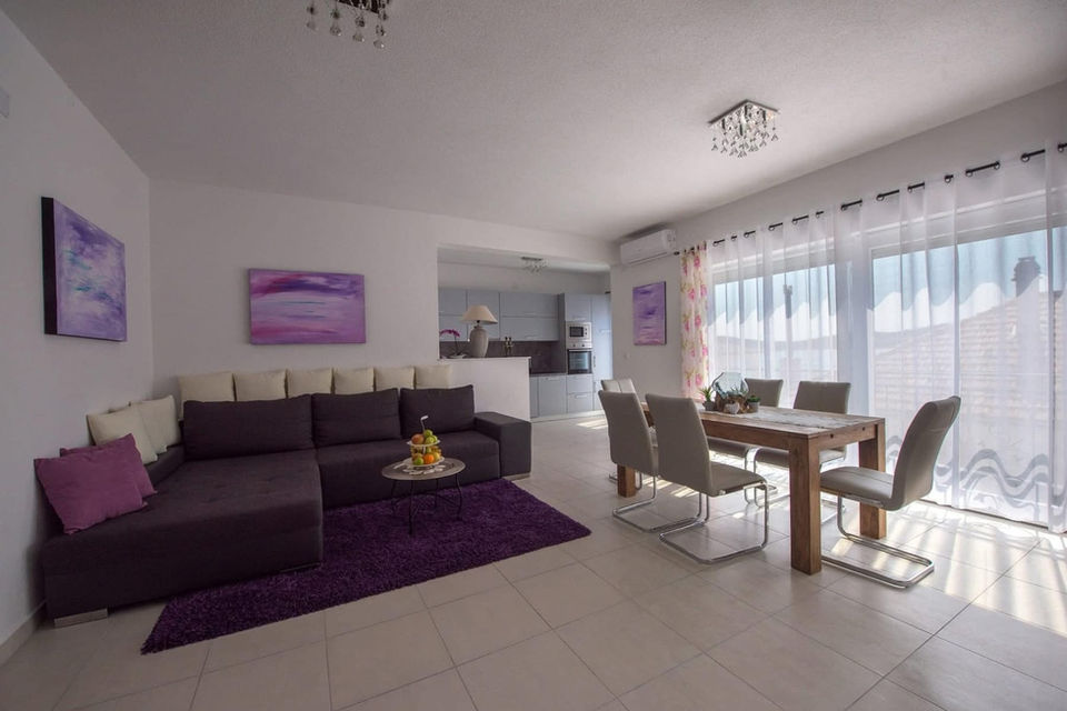 Das idyllisch gelegene Ferienhaus, mit zwei enthaltenen Wohnungen (Baujahr 2016) mit Meerblick, befindet sich in Tisno an der Küste zur Insel Murter. Diese bietet zahlreiche separate Badebuchten (Sand, Kies, Felsen) sowohl für Familien als auch FKK Liebhaber.